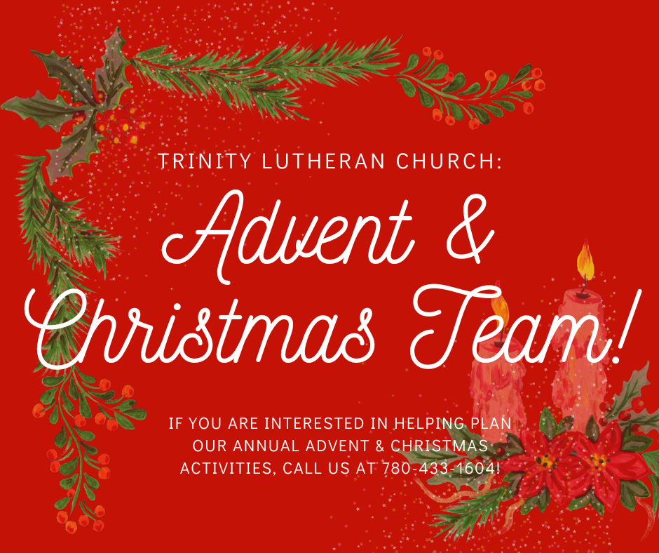 Can you believe we’re already thinking about Christmas? You bet we are! Trinity Lutheran is seeking to put together an Advent/Christmas planning team that will help coordinate our seasons’ services and activities. If you are interested, we’d love to hear from you!